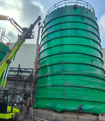 We manufacture contact moulded/hand lay-up tanks, filament wound tanks using advanced winding machines, and dual laminate tanks with thermoplastic liners such as PP, PVC, CPVC, ECTFE, PVDF, FEP, and TFM to ensure superior chemical resistance and durability.Prashant Plastic Industries LLP has successfully executed large-scale projects including an 80,000-liter rectangular tank (9200 x 3400 x 2800 mm), a 300 m³ PP/FRP vertical storage tank, and a 50,000-liter horizontal pressure vessel operating at 1 kg/cm². Our storage systems are supplied with complete accessories such as ladders, railings, level indicators, and customized fittings as per client requirements, delivering safe, reliable, and cost-effective industrial chemical storage solutions.